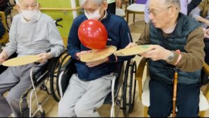 みんなで力を合わせて風船を隣の人に送っていきます!